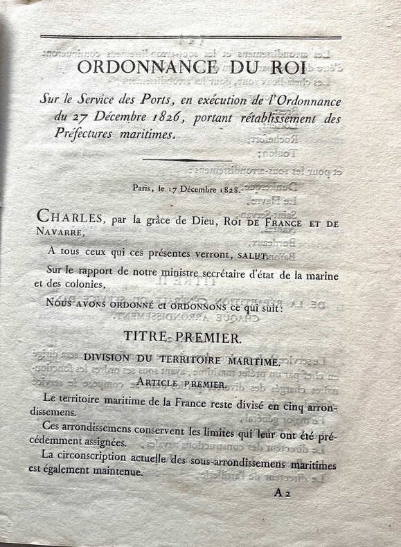 ORDONNANCE DU ROI SUR LE SERVICE DES PORTS, en exécution de l'ordonnance du 27 décembre 1826, portant rétablissement des préfectures maritimes.